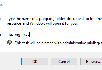 This will open the Run dialogue box where we are going to input the name of the program which is "lusrmgr.msc". Type that into the box (without the quotation marks, of course) and hit enter. This should take us to a menu where we can manage users and user groups:
