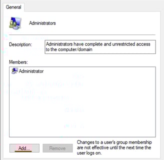 This will open a menu where you can manage the Administrators group. From here, click the "Add..." button: